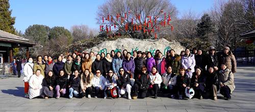 清晨的国家植物园,在经过春雪的洗礼后,空气格外清新。虽乍暖还寒,但阳光洒在身上已能感受到融融暖意。活动伊始,女职工们漫步于植物园内,首先映入眼帘的便是横亘在西山之巅的绝美景致:湛蓝如洗的天空下,层峦叠嶂的山峰披上了皑皑白雪,在阳光的照耀下晶莹闪烁,这正是乾隆皇帝题名的“西山晴雪”胜景。大家纷纷驻足,以雪峰为背景拍照留念,记录下这难得一见的自然风光。